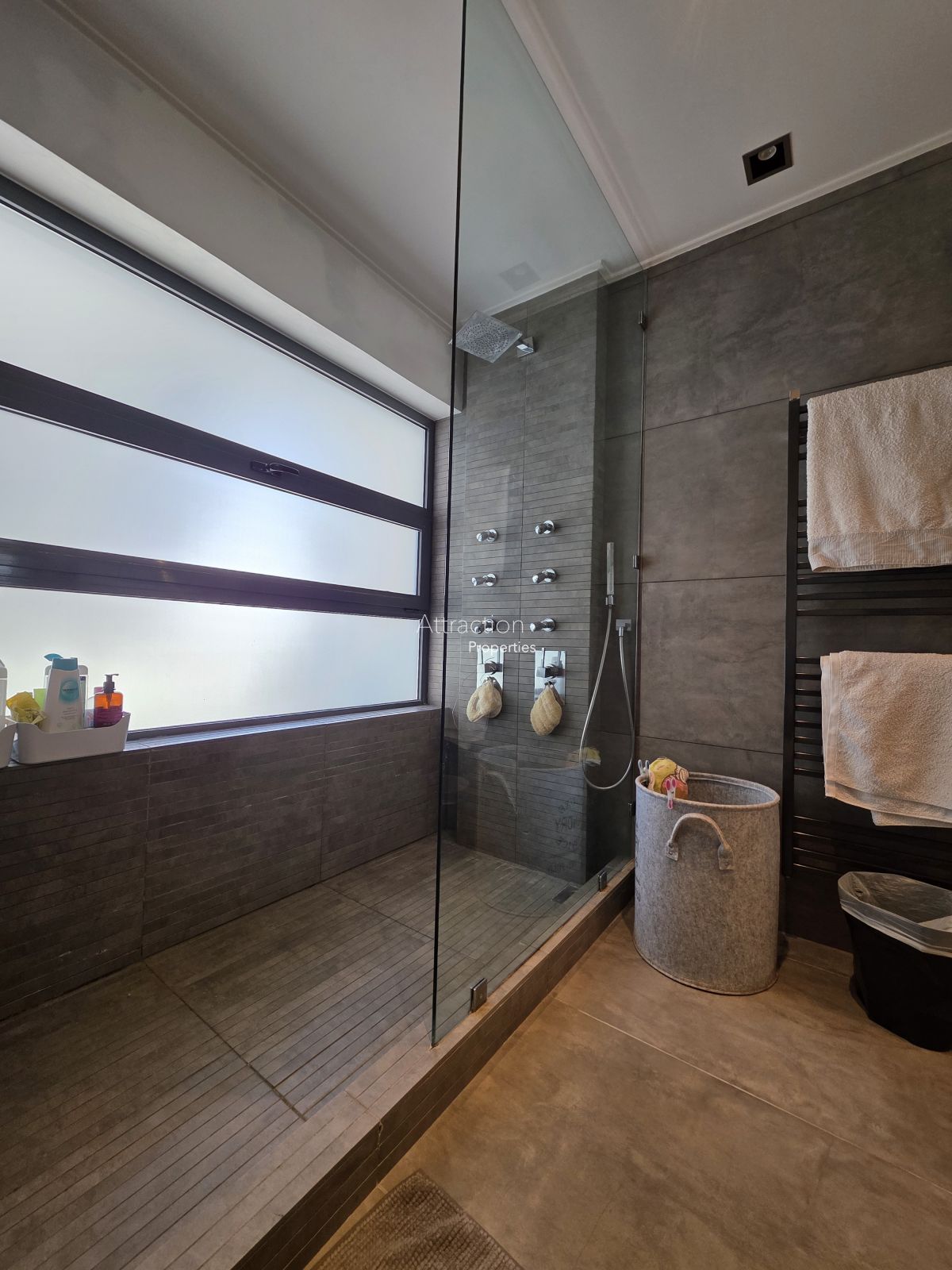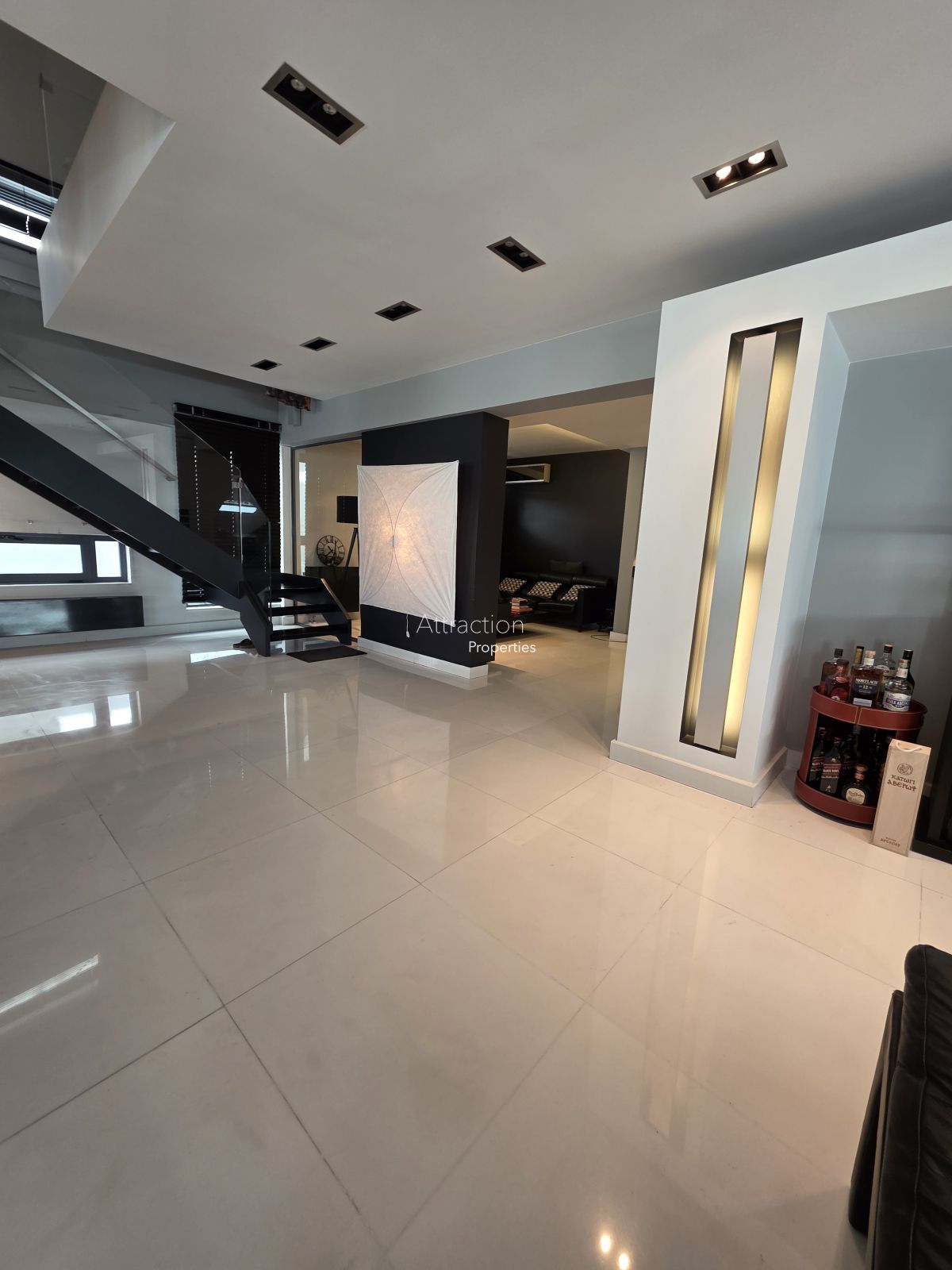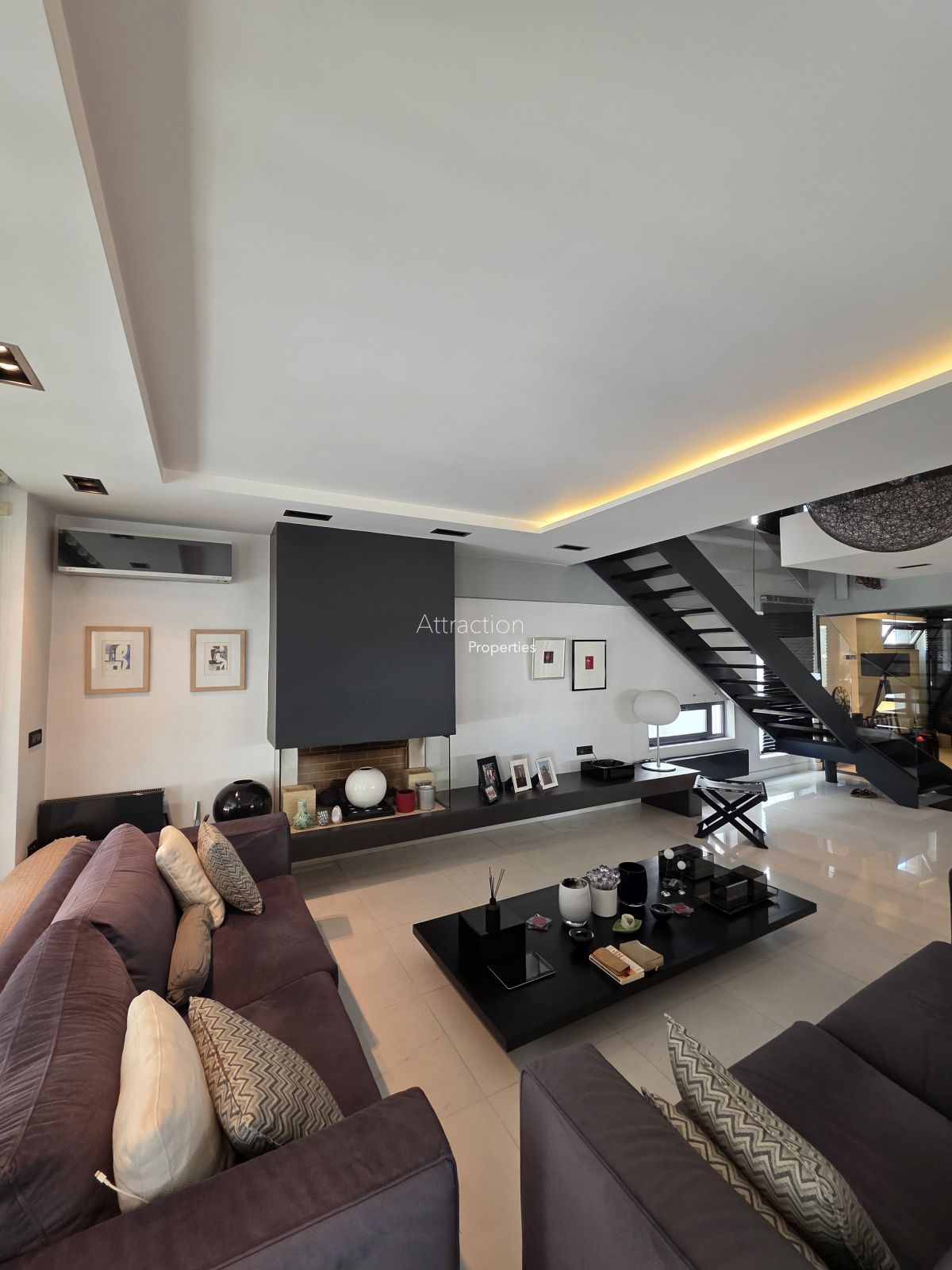 Η κατοικία εκτείνεται στους 5ο και 6ο ορόφους καλαίσθητης οικοδομής του 2007, διαθέτοντας εσωτερική σκάλα, τρία υπνοδωμάτια τύπου master, όλα με en suite μπάνια, τέσσερα πολυτελή μπάνια, χώρο laundry, ενιαίο σαλόνι με τζάκι και λειτουργική κουζίνα με άριστη εργονομία.