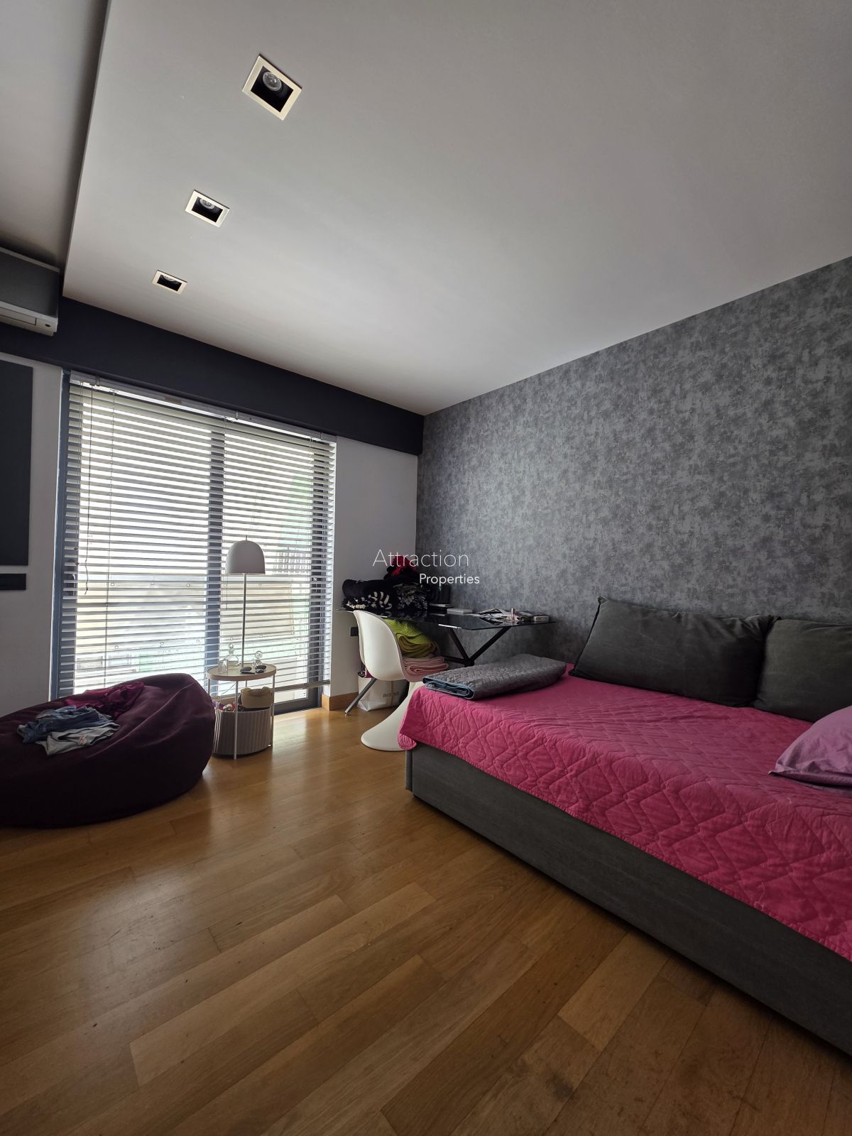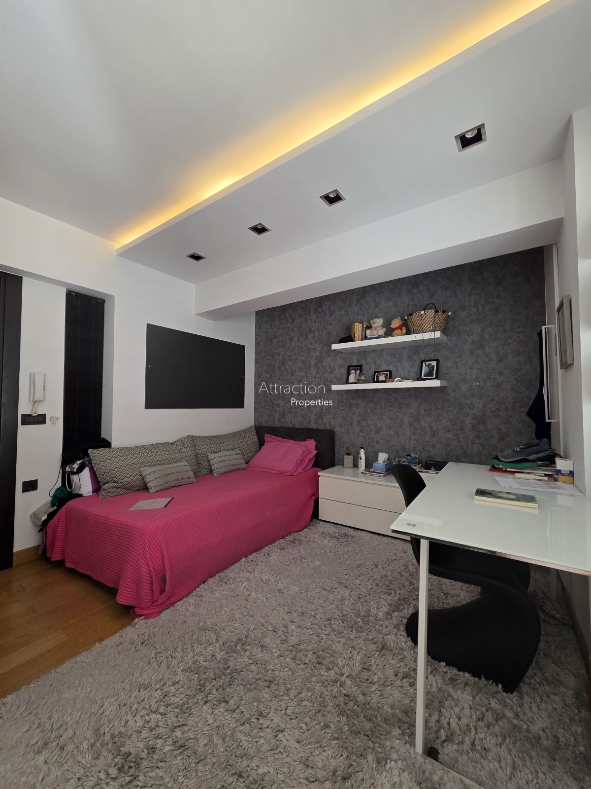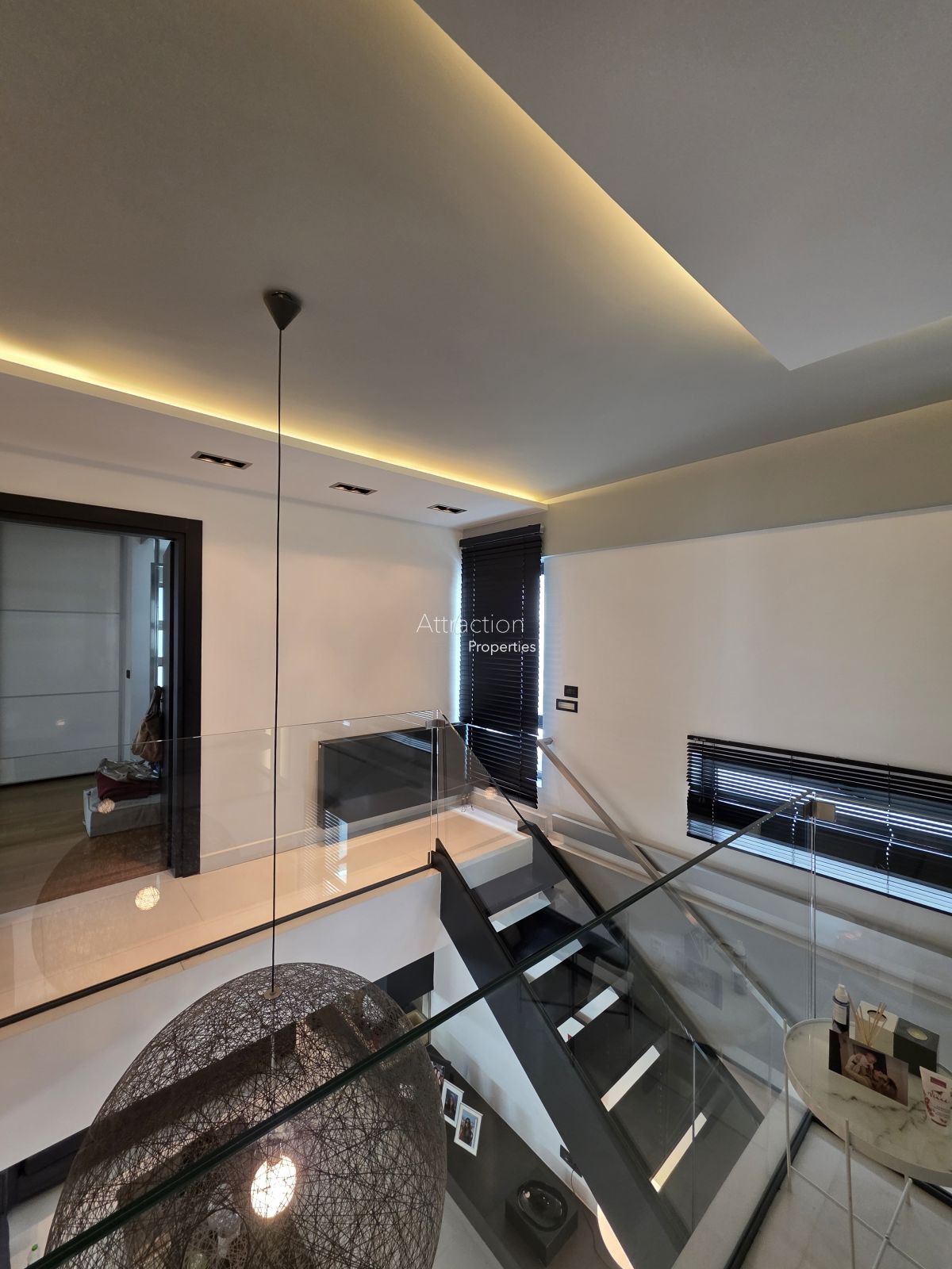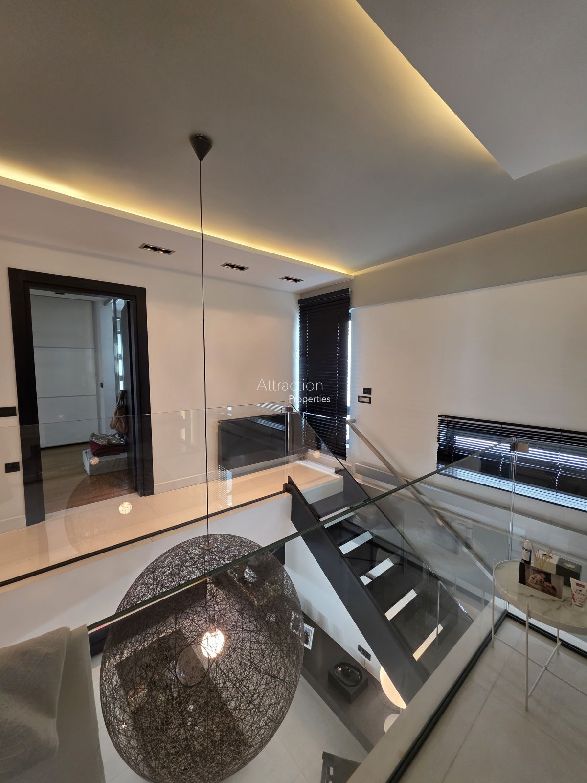 Η κατοικία εκτείνεται στους 5ο και 6ο ορόφους καλαίσθητης οικοδομής του 2007, διαθέτοντας εσωτερική σκάλα, τρία υπνοδωμάτια τύπου master, όλα με en suite μπάνια, τέσσερα πολυτελή μπάνια, χώρο laundry, ενιαίο σαλόνι με τζάκι και λειτουργική κουζίνα με άριστη εργονομία.