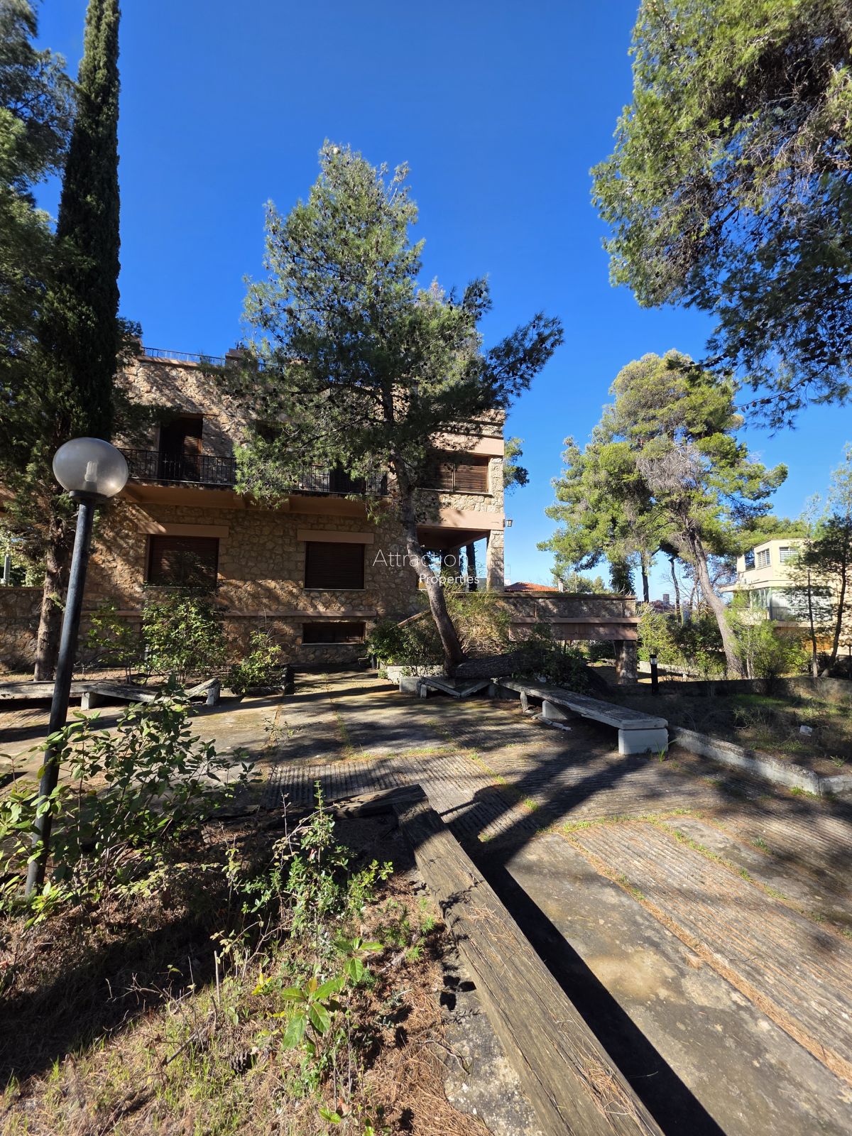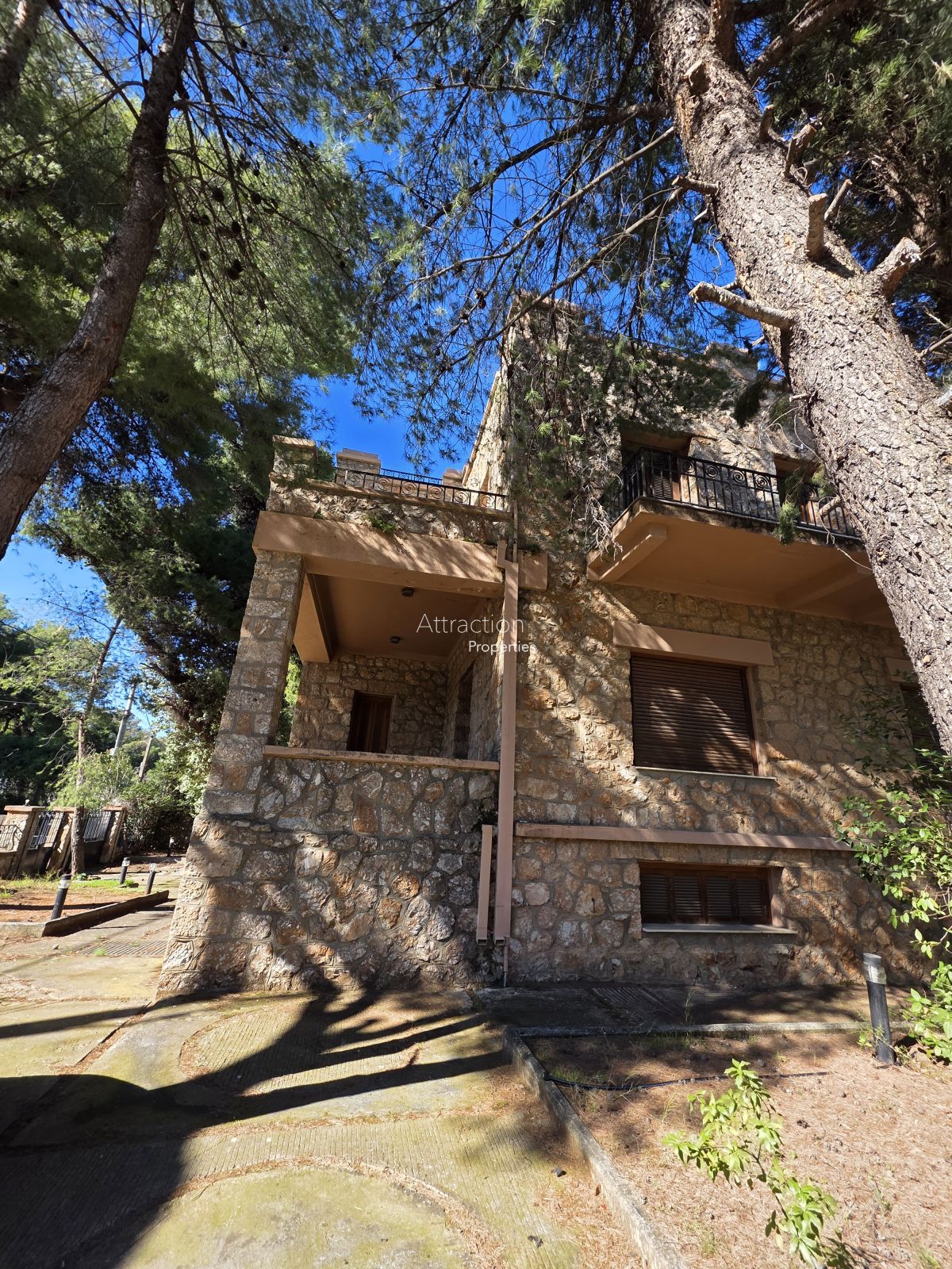 Το ακίνητο αναπτύσσεται σε ισόγειο, Α’ όροφο και φωτεινό υπόγειο, με συνολική επιφάνεια 476 τ.μ., εντός οικοπέδου 1.740 τ.μ., σε ώριμο φυσικό περιβάλλον με ψηλά πεύκα και απόλυτη ιδιωτικότητα.
