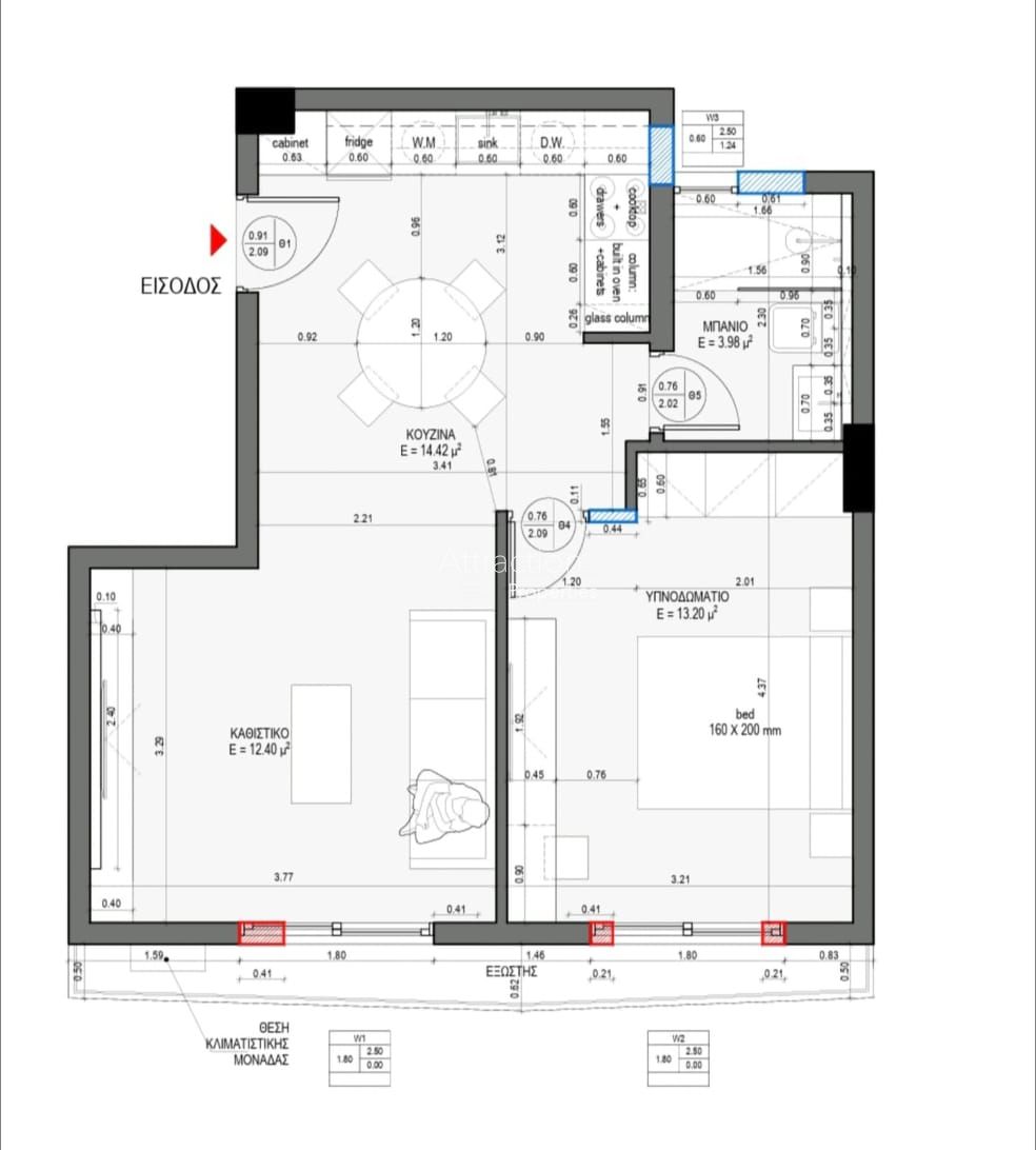 Κουφώματα αλουμινίου διπλής υάλωσης, πόρτα ασφαλείας, τέντες, φυσικό αέριο, A/C.